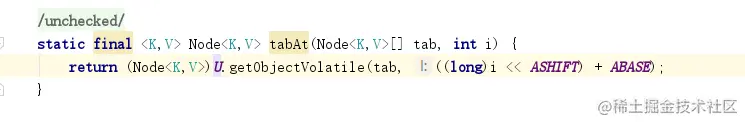 可以看到,这里是通过 tabAt 方法来获取元素,而 tableAt 方法实际上就是一个 CAS 操作: