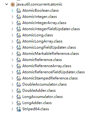 并发包 java.util.concurrent 的原子类都存放在java.util.concurrent.atomic下,如下图所示。