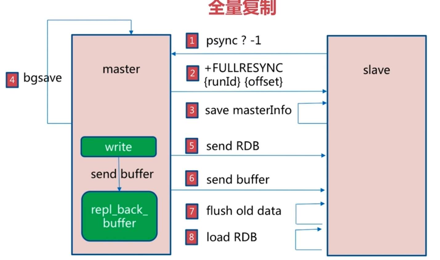 - 如果offset偏移量之后的数据已不在复制积压缓冲区中(数据已被挤出覆盖),则执行全量复制。