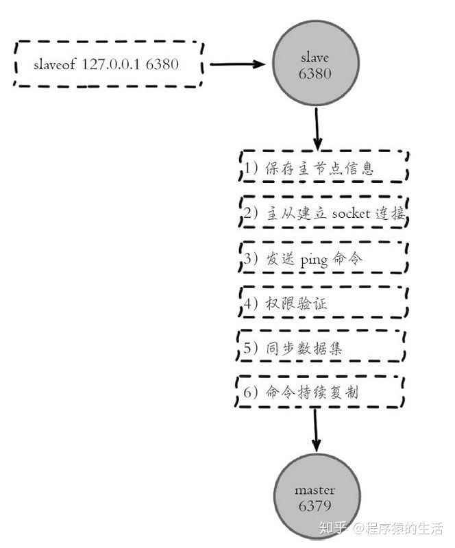 在从节点执行 slaveof 命令后,复制过程便开始运作,下面图示大概可以看到,