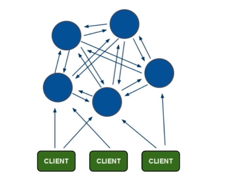 分布式特性:服务端每个节点相互通信,且每个节点负责读写。